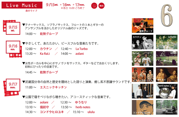 ・日時:9/15(土)・16(日)・17(月・祝) 11:00~15:30