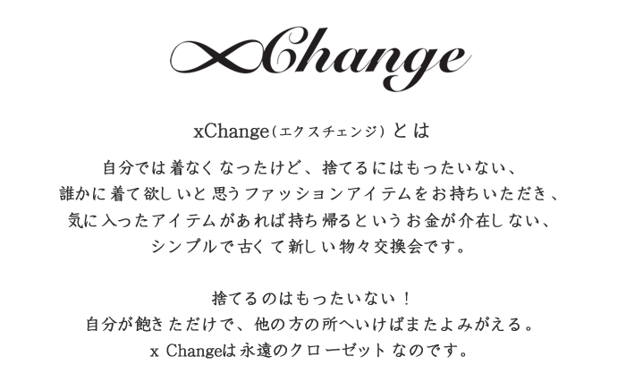 初秋、毎回好評のxChange!今回は地域のおまつり「ぶんぶんウォーク」にてxChangeを開催!気持ちいい風が吹き始める季節。とっておきの秋の洋服を持って是非遊びにきてください。