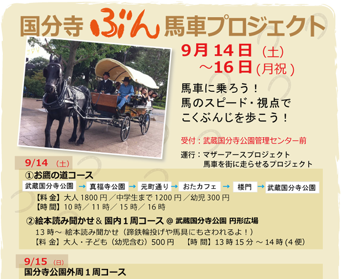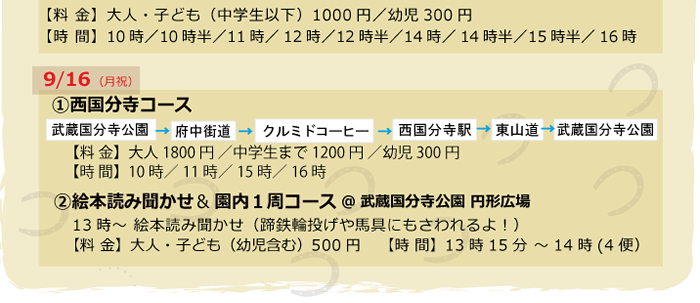 ご予約いただいた時間の10分前に武蔵国分寺公園管理センター前に集合してください。