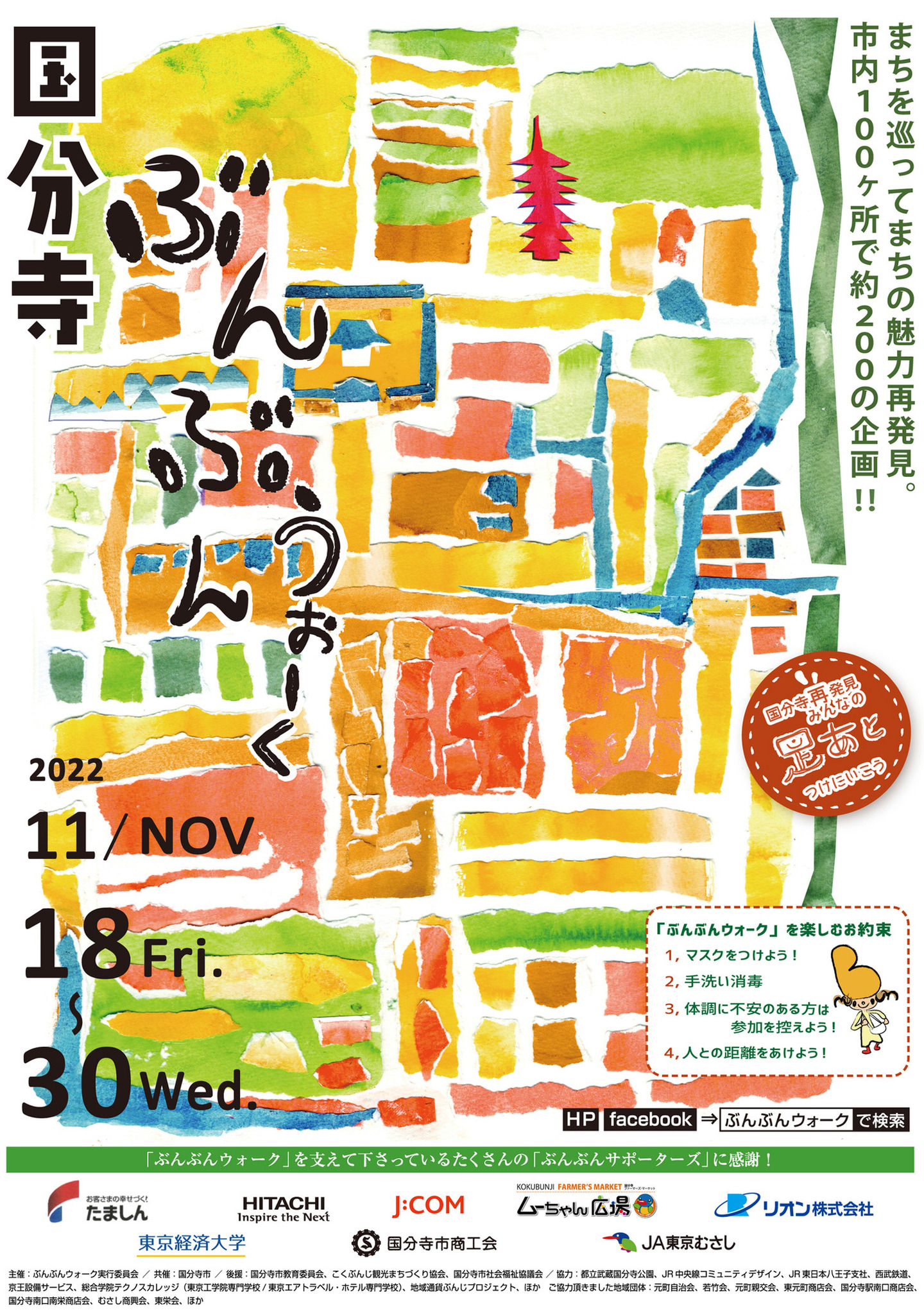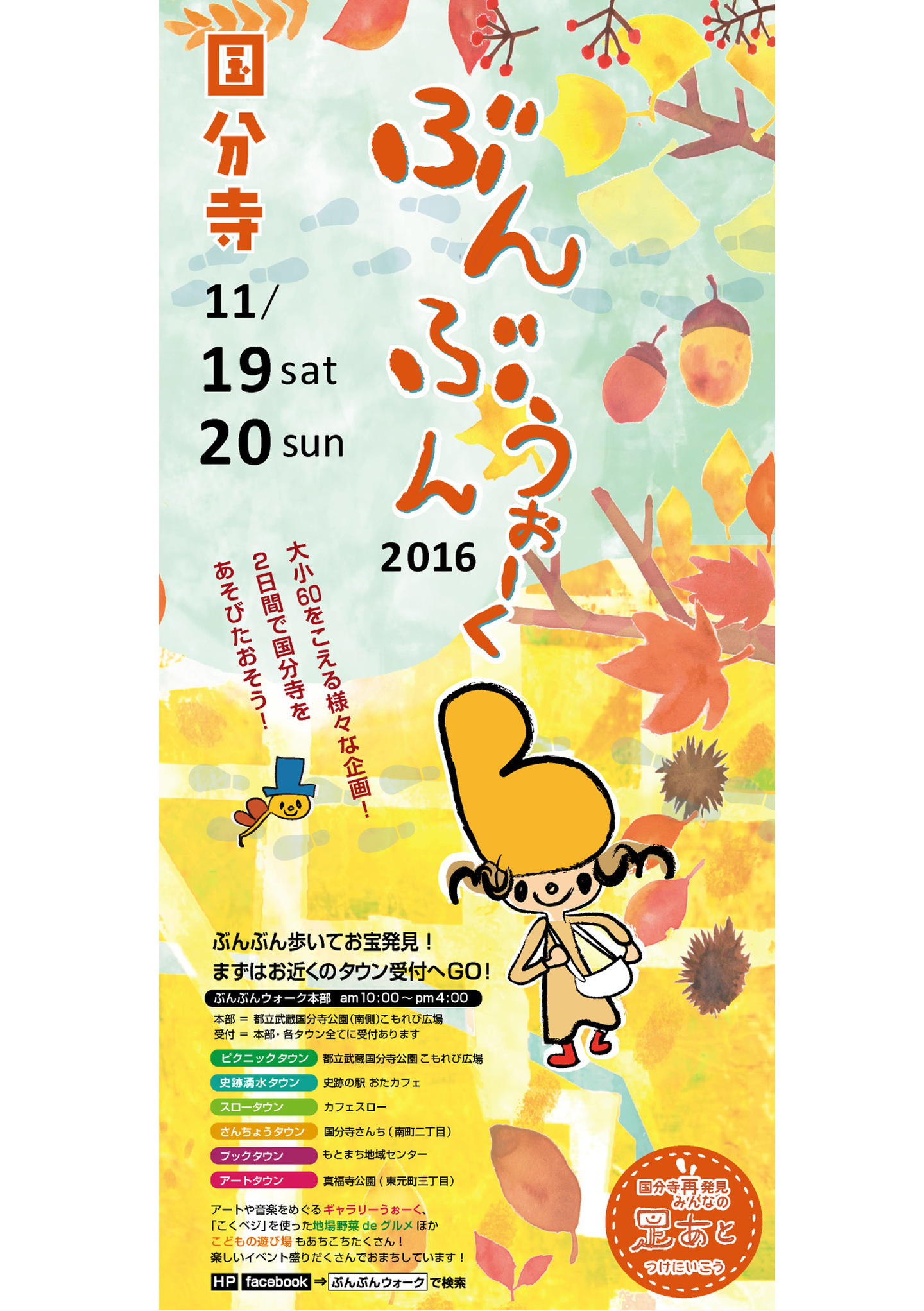 ぶんぶんウォーク2024 11月22日(金)~12月1日(日) / 10日間 詳しくはこちら ぶんぶんウォーク2023 11月17日(金)〜11月30日(木) / 14日間 詳しくはこちら ぶんぶんウォーク2022 11月18日(金)〜11月30日(水) / 13日間 詳しくはこちら ぶんさんウォーク2021 11月19日(金)〜11月30日(火) / 12日間 詳しくはこちら ぶんさんウォーク2020 11月20(金)〜11月30日(月) / 11日間 詳しくはこちら ぶんぶんウォーク2019 11月16日(土)、11月17日(日) / 2日間 詳しくはこちら ぶんぶんウォーク2018 11月24日(土)、11月25日(日) / 2日間 詳しくはこちら ぶんぶんウォーク2017 11月18日(土)、11月19日(日) / 2日間 詳しくはこちら ぶんぶんウォーク2016 11月19日(土)、11月20(日) / 2日間 詳しくはこちら ぶんぶんウォーク2015 11月22日(日)、11月23日(月) / 2日間 詳しくはこちら ぶんぶんウォーク2014 11月23日(日)、11月24(月) / 2日間 詳しくはこちら ぶんぶんウォーク2013 9月15日(日)、9月16日(月) / 2日間 詳しくはこちら ぶんぶんウォーク2012 9月15日(土)〜9月17日(月) / 3日間 詳しくはこちら ぶんぶんウォーク2011 9月17日(土)〜9月25日(日) / 9日間 詳しくはこちら
