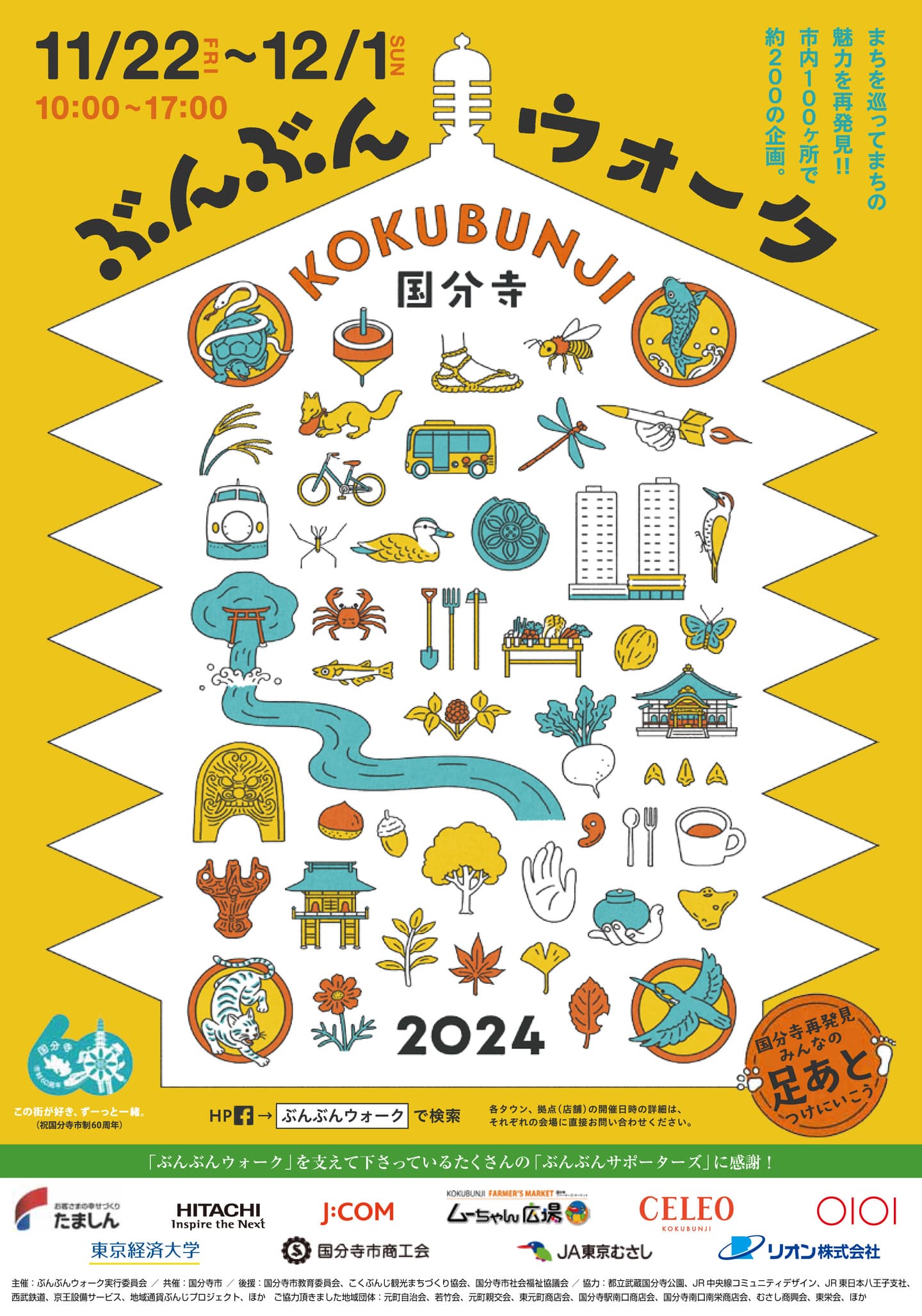 最新情報 NEWS {"articleType":"1","limit_article_num":"3","article_disp_offset":"0","article_disp_offset_num":"","article_new_offset":"1","article_new_offset_num":"5","blogs":[{"sid":"JlWlN6HUH1l","categories":"","tags":"","order":"newer","name":"ブログ","pathToFolder":"./blog/","topfile":"top.html","rss":"0"}]} [%new:new%] [%article_date_notime_dot%] [%title%] [%category%] ぶんぶんウォークとは 国分寺の魅力を再発見! 市内約100カ所で約200の企画 ぶんぶんウォークは、まちをぶらぶら歩きながら、国分寺の魅力を再発見するイベントです。期間中、大小200を超える様々な企画が盛りだくさん!イベントに参加したり、ぶらぶら歩いて途中のカフェやお店に立ち寄ったりしながら国分寺の“まち”を満喫してみませんか?今年もこの“まち”の様々なところに、多くの方の足あとがつけられることを期待します! 詳しくはこちら